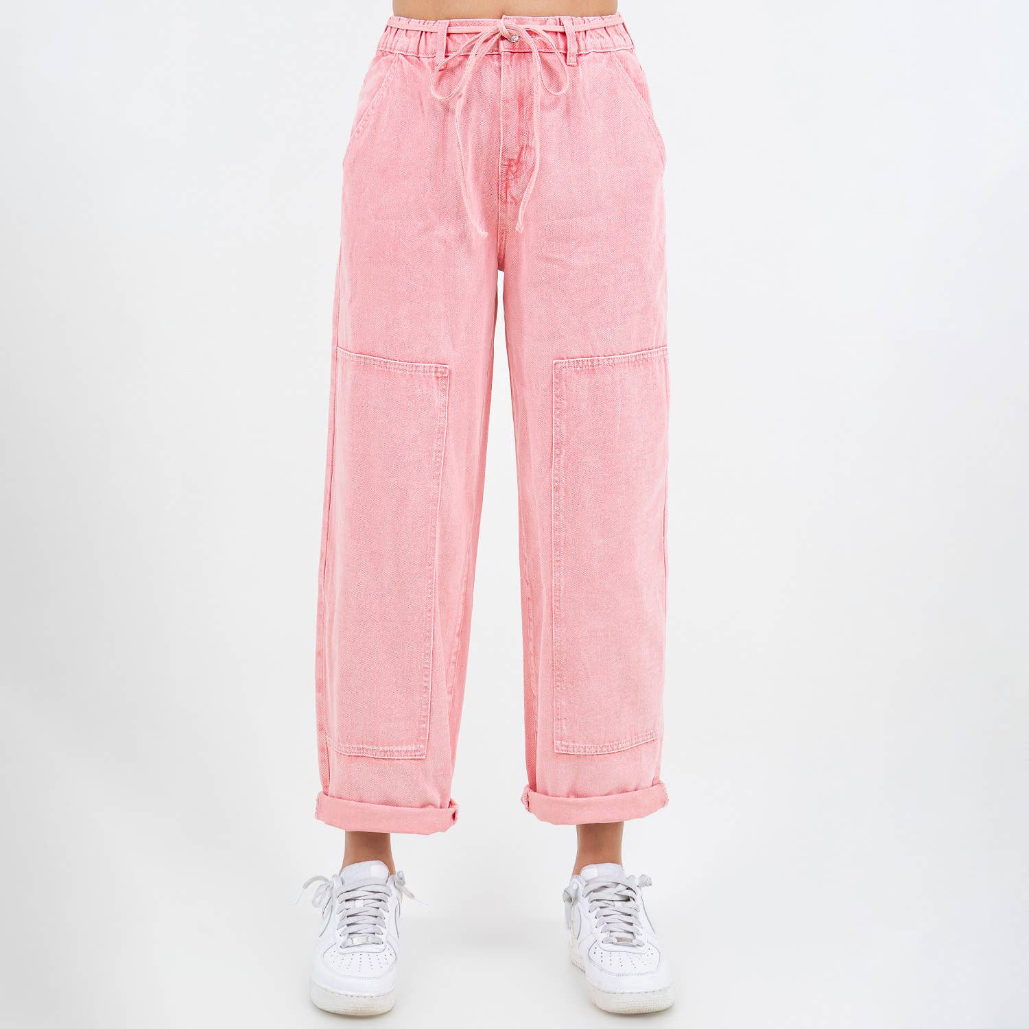 COLOR WASHED BARREL FIT PANTS-RJH21162: TAN WASH / Junior / S