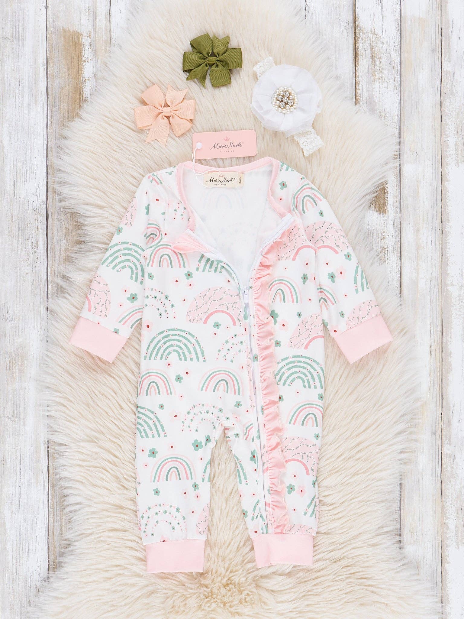 Rainbow Dreams Ruffle Sleeper Pajamas: 6/12MOS